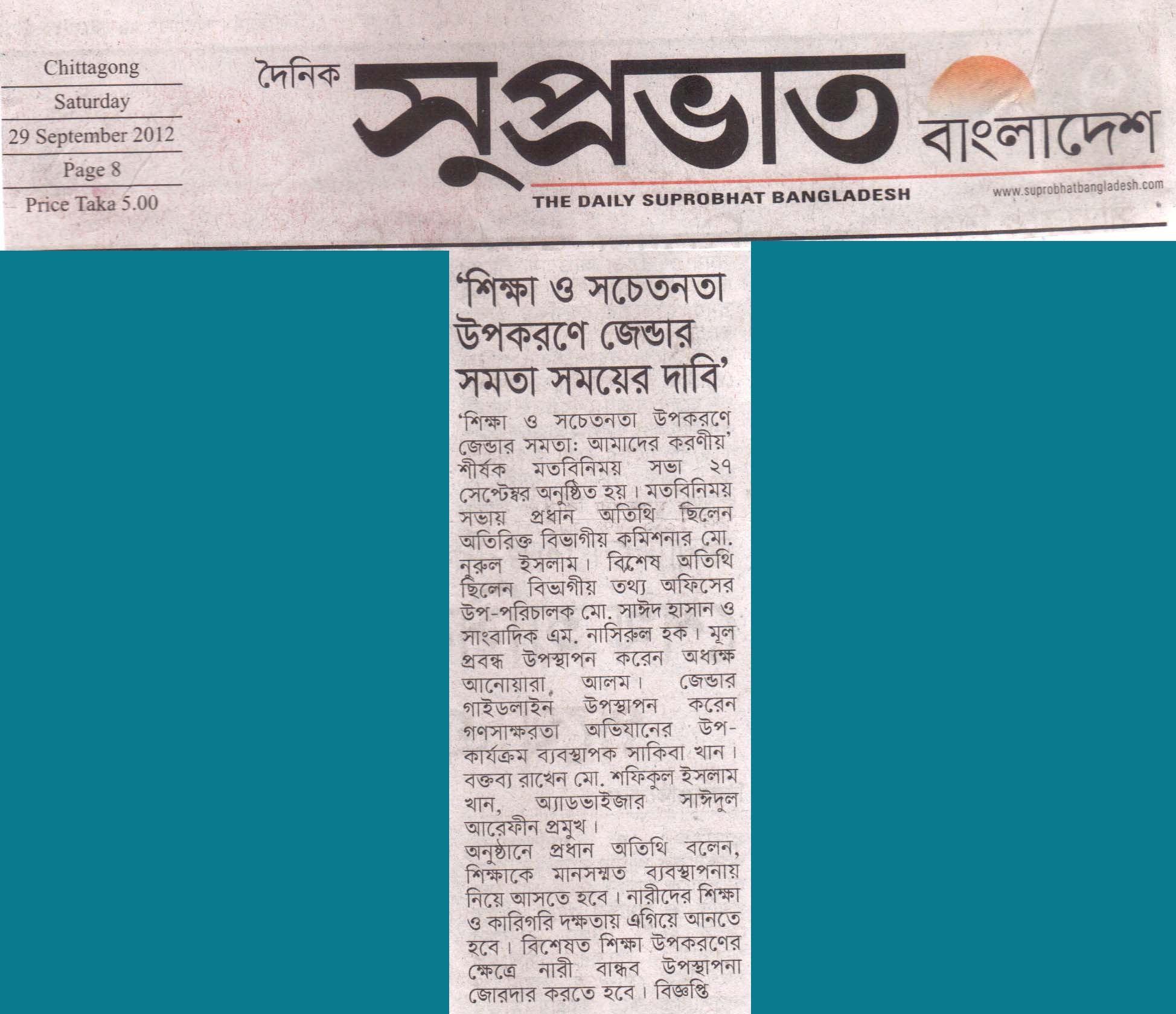 শিক্ষা ও সচেতনতা উপকরণে জেন্ডার সমতা সময়ের দাবি